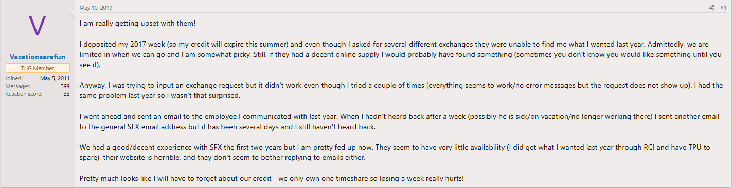 4. Overstated Perks During the Sales Pitch: SFX is often presented as the “secret weapon” for getting better trades than RCI or Interval. Owners regularly say this simply didn’t happen.