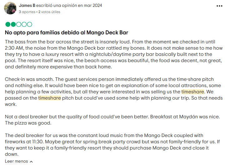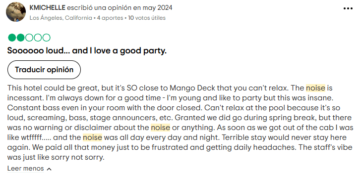 - A Never-Ending Party (Whether You Want It or Not): Perhaps the most glaring issue at Casa Dorada is the noise. A beachside resort should exude calm and relaxation, but instead, the Mango Deck Bar—a neighboring party hotspot—makes sure that peace and quiet are the last things you’ll experience. The loud music blares late into the night, and because the hotel’s main selling point is its beachside view, there’s no escaping the cacophony. Even guests with positive things to say about the resort mention the noise as a persistent problem. So, if you’re hoping for a serene getaway, you’ll need to pack earplugs… or reconsider altogether.