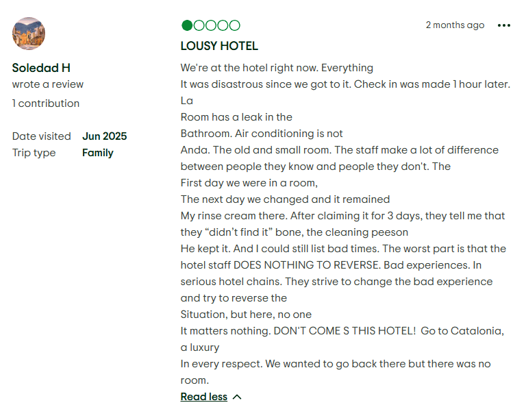 - Service and Responsiveness: Check-in is often slow, and requests for maintenance or basic needs can take hours (or never arrive). Bar service at peak times involves long waits, and some reviewers describe staff as friendly but overwhelmed, while others felt brushed off.