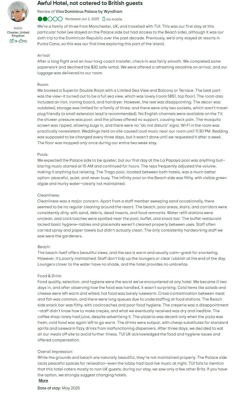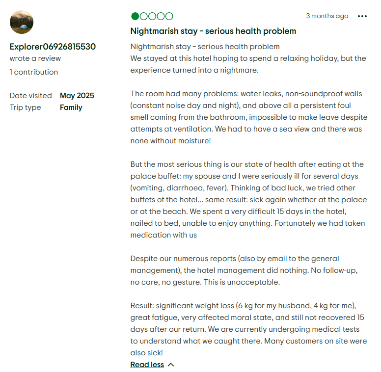 - Parasite Allegations (Palace): In 2024–2025, UK tabloids reported a family claiming they contracted parasitic worms after staying at the Palace. While these reports remain unverified and come from tabloid sources, they’ve nonetheless added to concerns over sanitation and food handling.