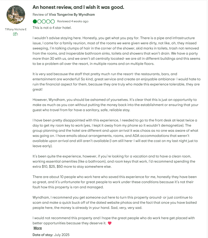 Online reviews across TripAdvisor, Booking.com, and Expedia reveal consistent issues: