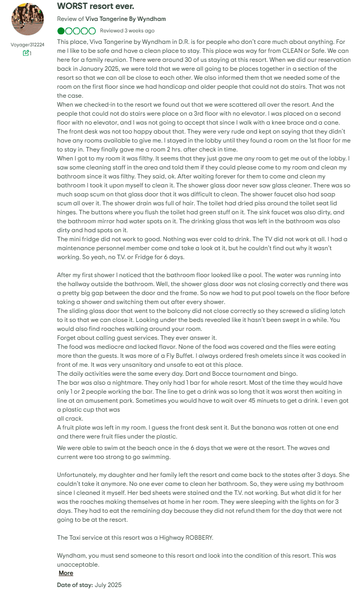 Viva Tangerine itself hasn’t been the center of major legal scandals, but a sister property, Viva Dominicus Beach, was involved in a high-profile wrongful death lawsuit in 2025 related to alleged food poisoning. Additionally, Wyndham, the broader corporate partner, has faced legal action over timeshare sales practices in recent years. While not directly tied to Tangerine, this is relevant if you’re considering any form of ownership or vacation club membership.