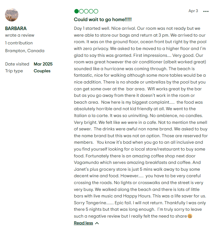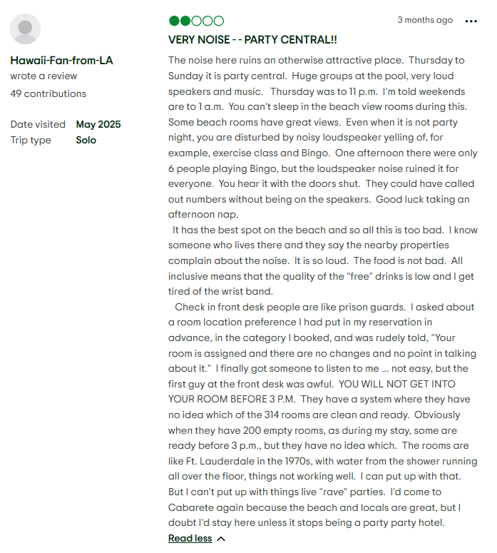 - Weak Bar Service – Watered-down drinks and improperly refrigerated beverages have disappointed many guests expecting a full all-inclusive experience.