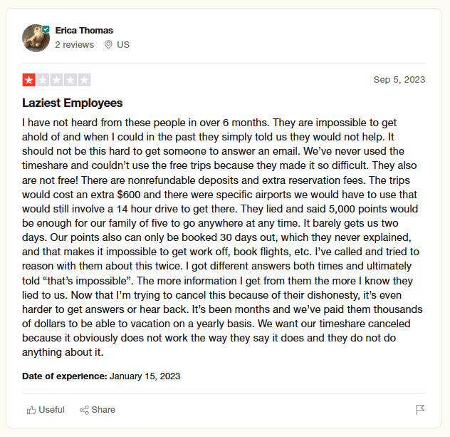 - Misrepresentation & Fraud: Many customers report that they were given misleading information about their timeshare agreements.