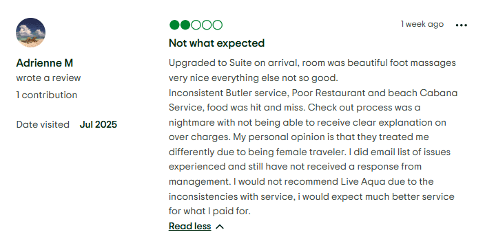 Live Aqua may market itself as a luxury experience, but the reality is more complicated. While some guests do enjoy their stays, others feel let down, especially when paying top dollar or committing to a long-term timeshare arrangement.