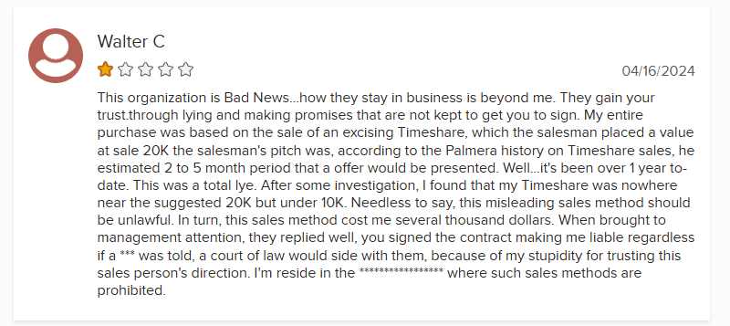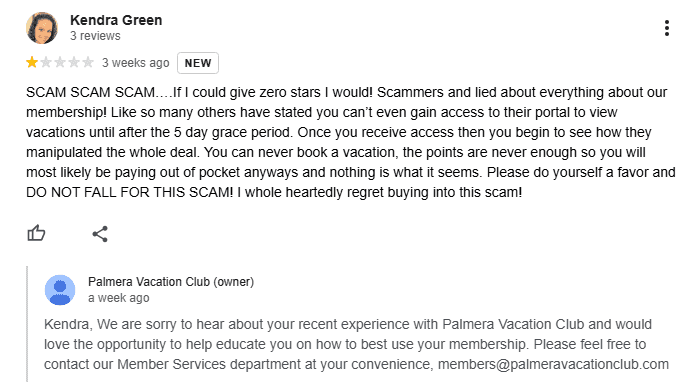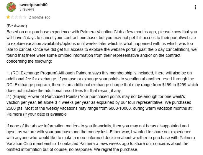 Palmera Vacation Club has a strong 4.8-star rating on Google with over 3,000 reviews. However, a look at other platforms tells a different story.