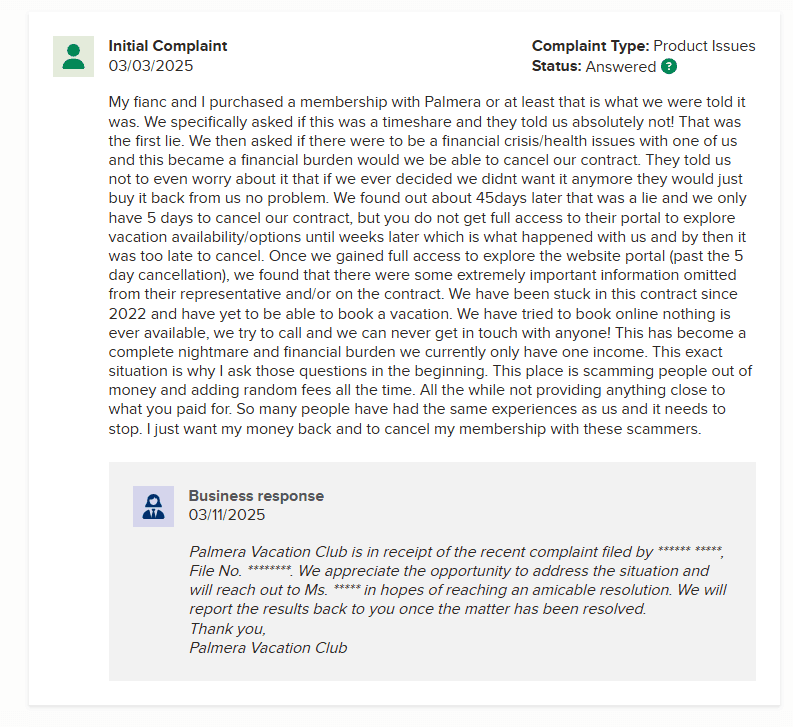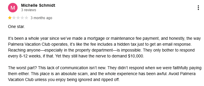 - Difficulty in Direct Communication – If Palmera Vacation Club is unresponsive for basic requests, resolving a contract dispute directly may be even more challenging.