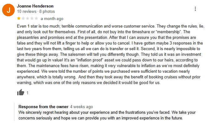 Many customers have voiced concerns over deceptive sales tactics, difficulty in booking vacations, high fees, and challenges in canceling memberships. Here are some of the major complaints: