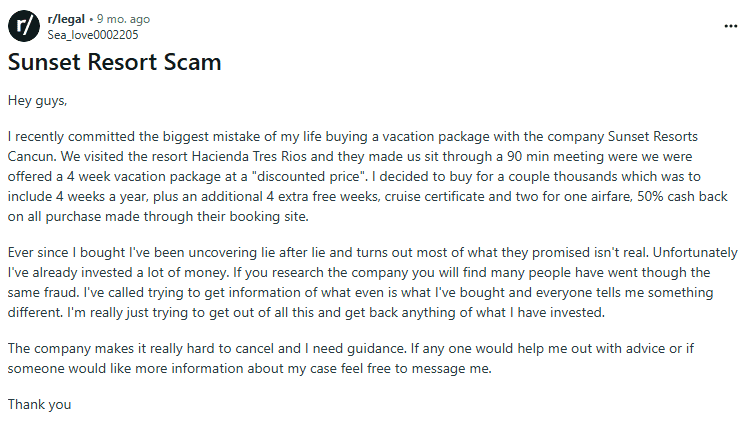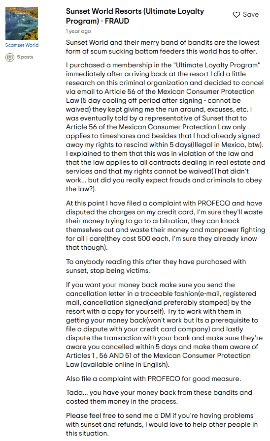 Cancelling a timeshare contract is notoriously tricky, but Sunset Group takes it to another level. Even when people follow cancellation policies outlined under Mexican law, they report hitting a brick wall—unresponsive customer service and an unwillingness to provide refunds.