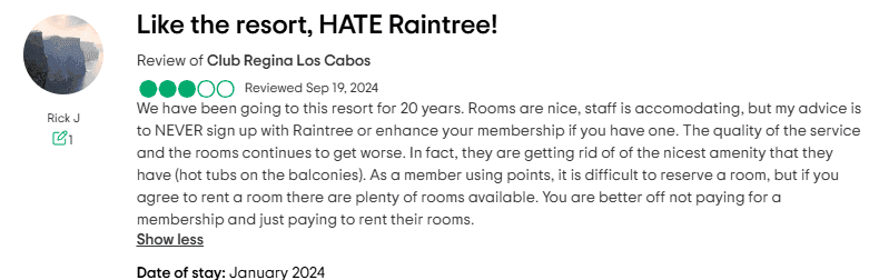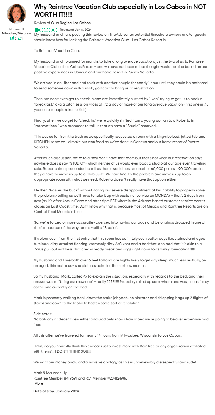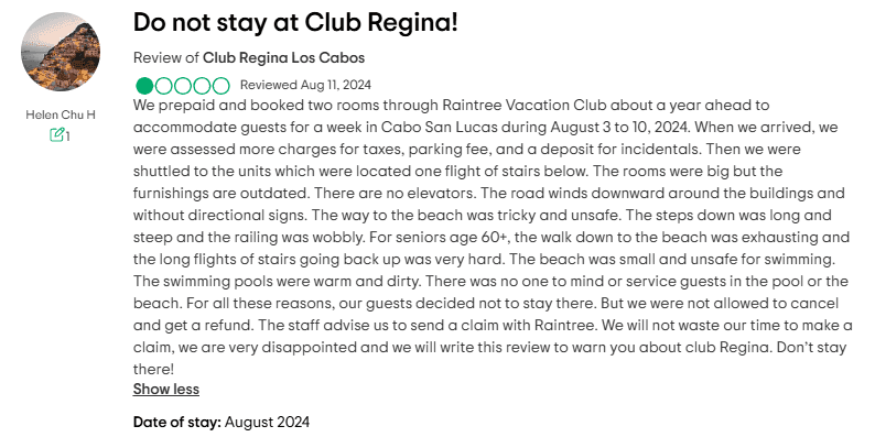 If you're dealing with these kinds of issues regularly, it's reasonable to wonder if it's worth continuing your relationship with Club Regina. Ongoing fees, limited booking availability, poor maintenance, and lost perks can all add up to an experience that no longer matches what was initially promised.