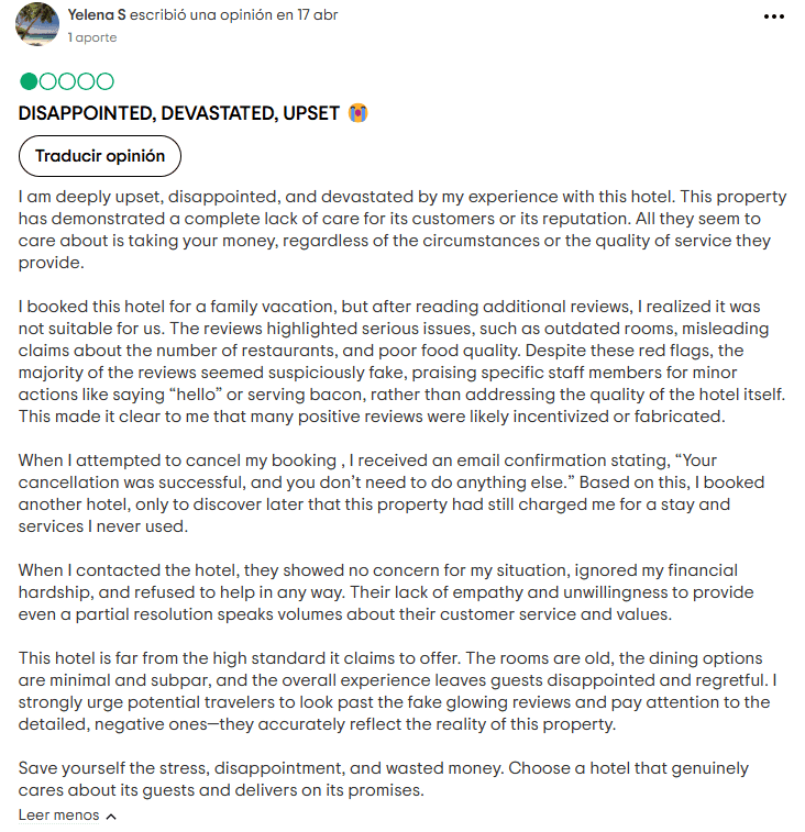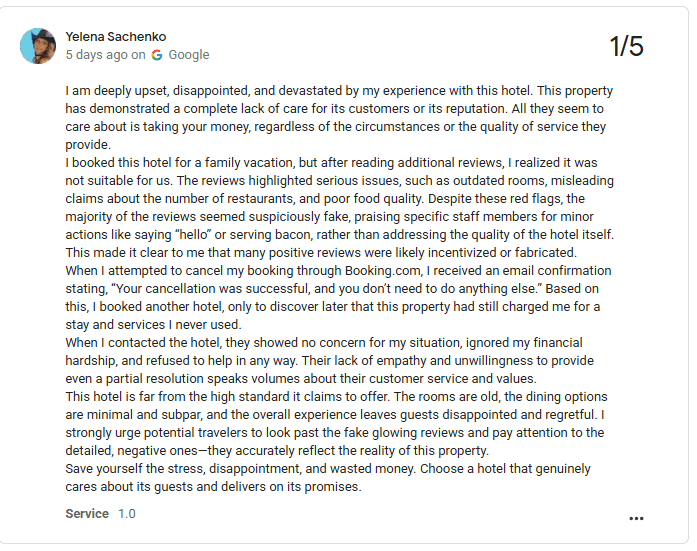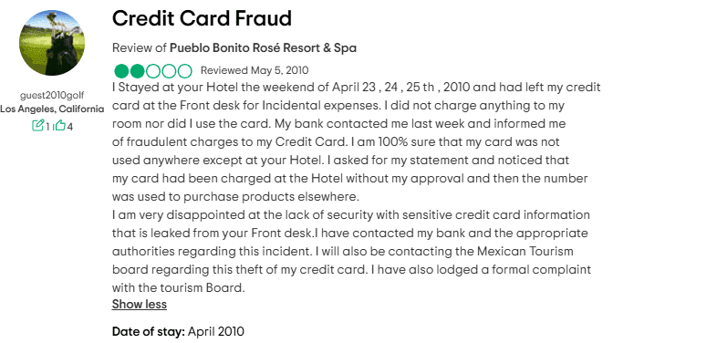 In a case from 2010, a guest's credit card was used without authorization, leading to fraudulent charges. While it may be an isolated case, it has remained a point of concern for potential visitors.
