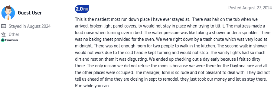 To be fair, some guests have mentioned helpful staff or appreciated the beachfront location. But even in more positive reviews, recurring issues like elevator breakdowns and lack of basic upkeep still creep in.