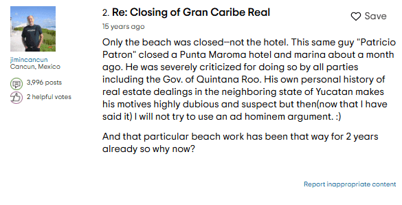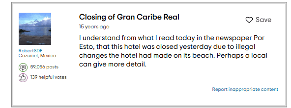 After selling that hotel, BD Real transferred the Gran Caribe Real name to another property it owned, the former Continental Villas Plaza site at kilometer 11.5. This is the location that continued on as Gran Caribe Real (and eventually became Panama Jack Cancun, and now Wyndham Alltra Cancun).