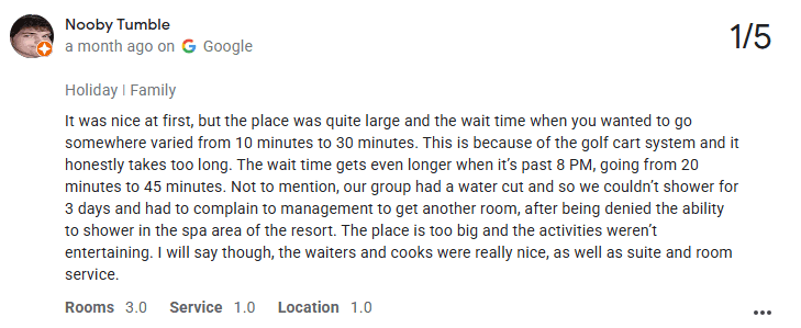 - Maintenance & Cleanliness: Guests have complained about water leaks, moldy shower doors, and ant problems in rooms. For a resort boasting luxury, these recurring issues are frustrating and disappointing.
