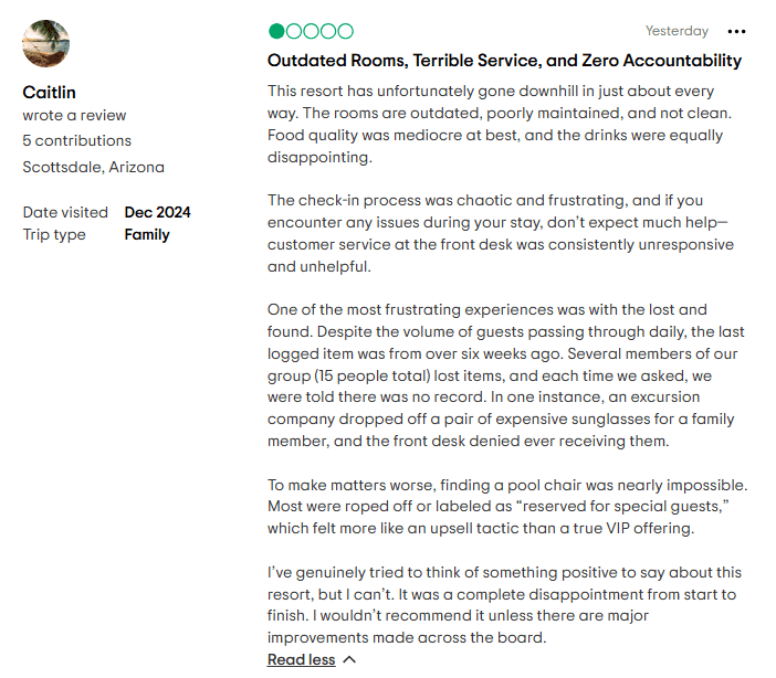 - Safety Concerns: In 2019, there was a deeply troubling incident where a guest alleged sexual assault by a staff member. Beyond the incident itself, the real shock came from how poorly management handled it — with delays and an apparent lack of empathy.