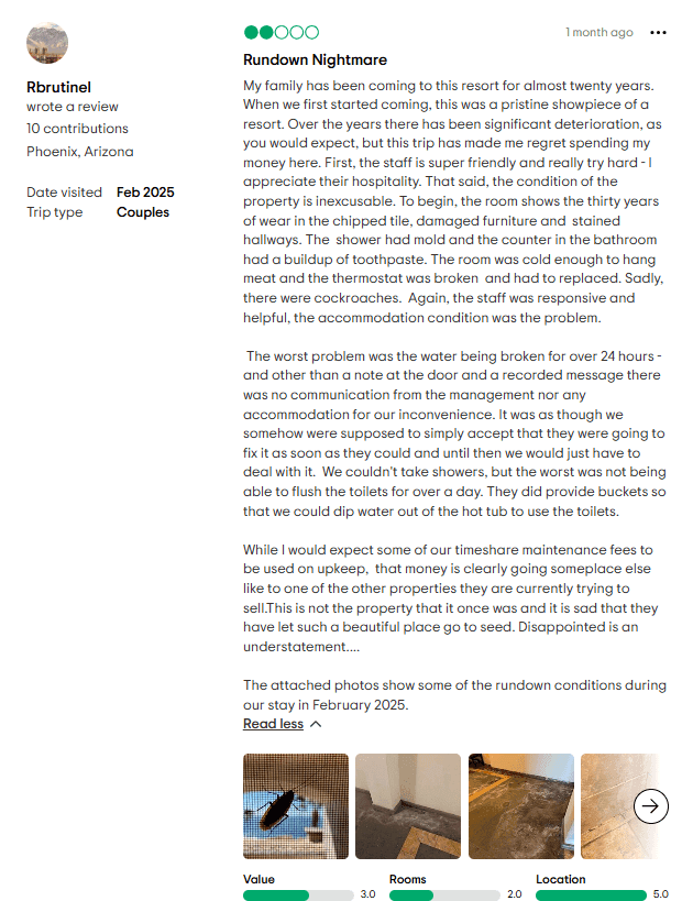 - Timeshare Sales Tactics: One of the biggest sources of complaints is the resort’s aggressive, high-pressure timeshare sales tactics. People have felt misled about the benefits and stuck in contracts they barely understood. The presentations can be misleading, and the pressure to sign is intense.