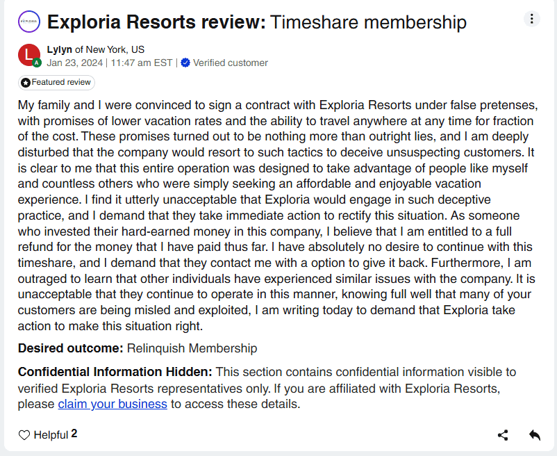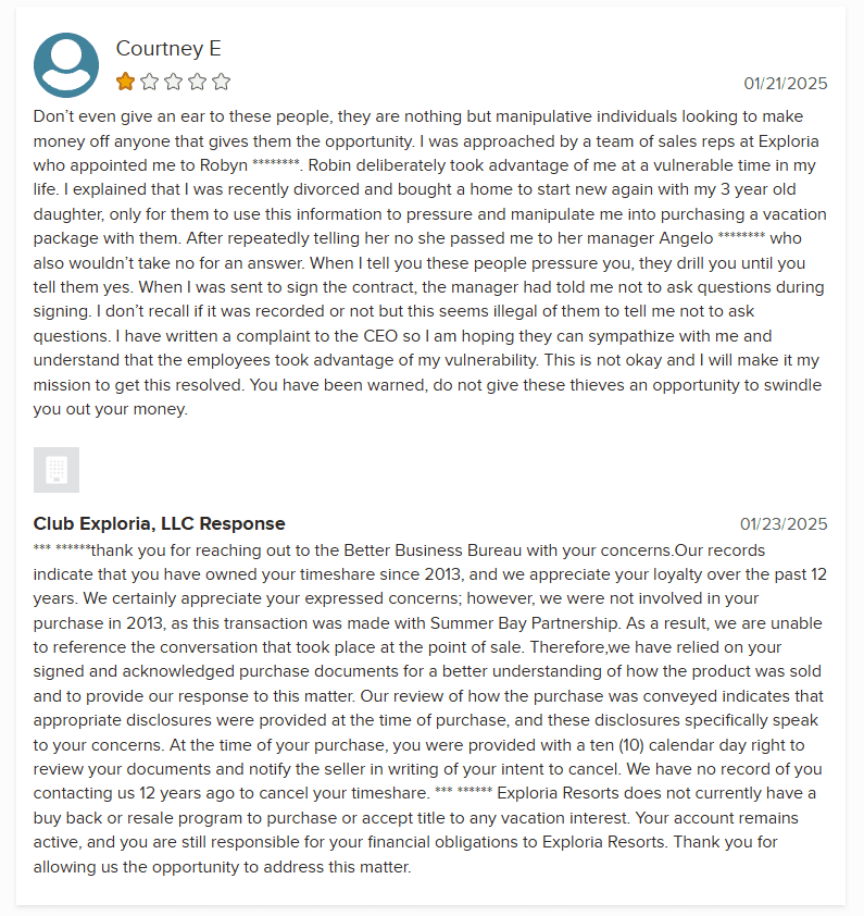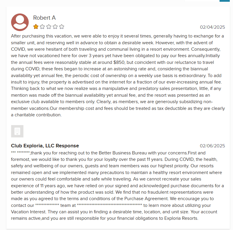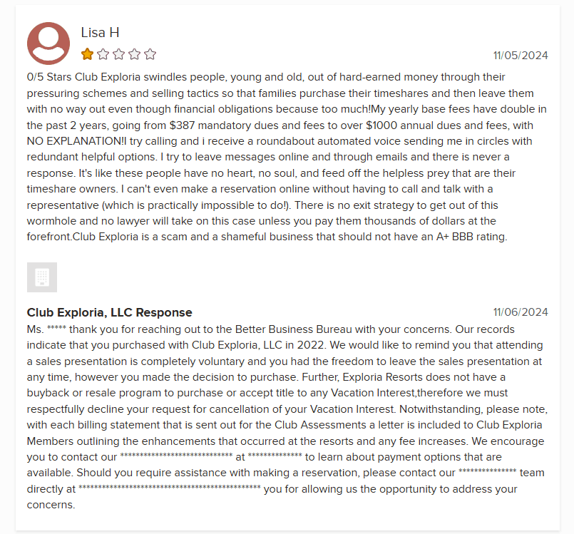Customer service is a significant pain point for many Exploria Resorts owners. Complaints frequently mention: