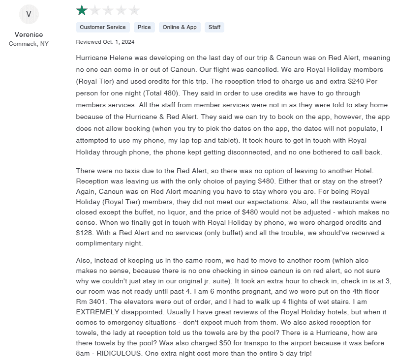 Even after decades, Royal Holiday Club hasn’t shaken its reputation for shady dealings. Consumer reviews paint a grim picture. On ConsumerAffairs.com, the company holds a paltry 1.1-star rating from 343 reviews. Complaints range from unresponsive customer service during emergencies to sky-high fees and—you guessed it—deceptive sales tactics. Some things just don’t change.