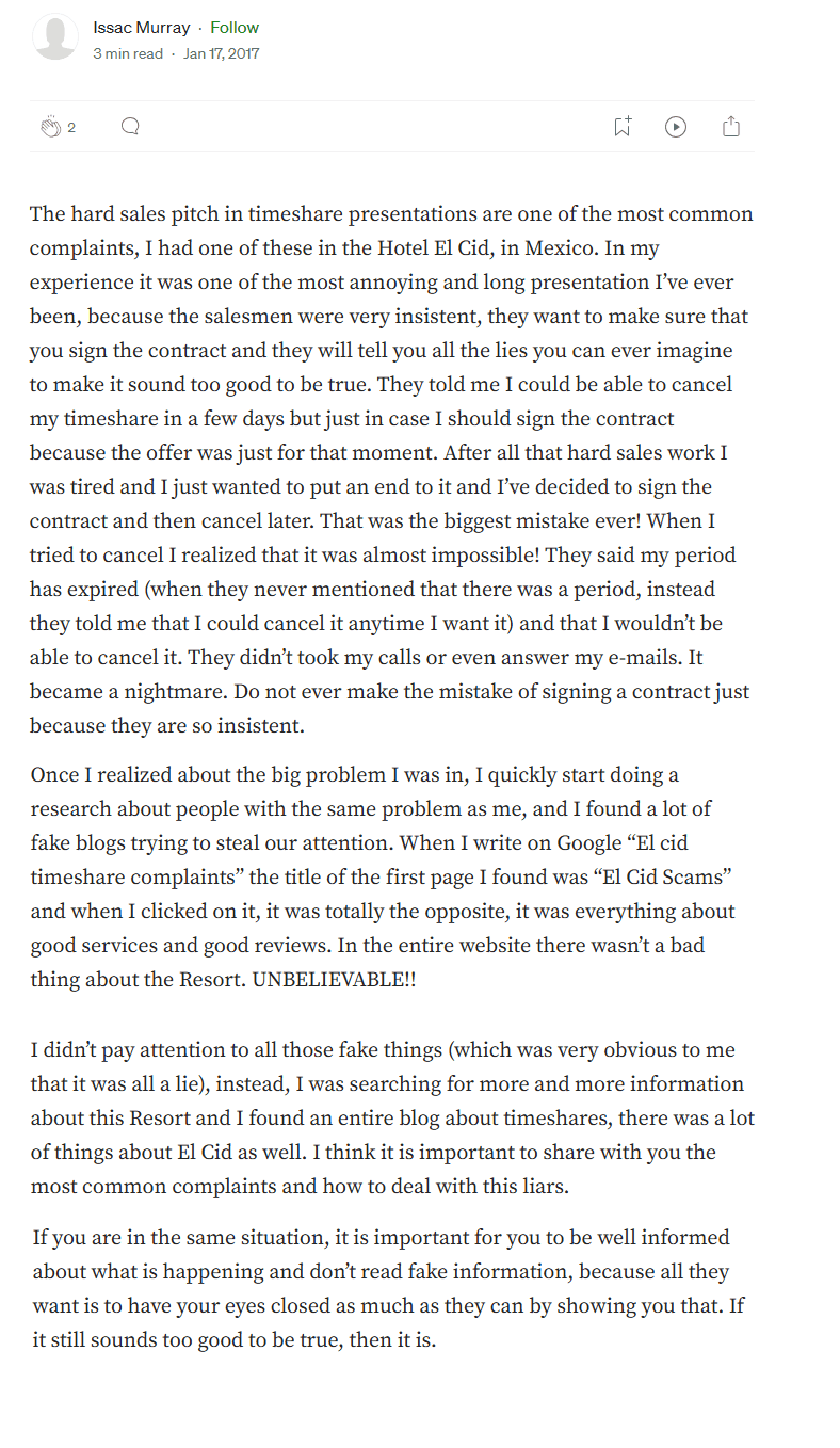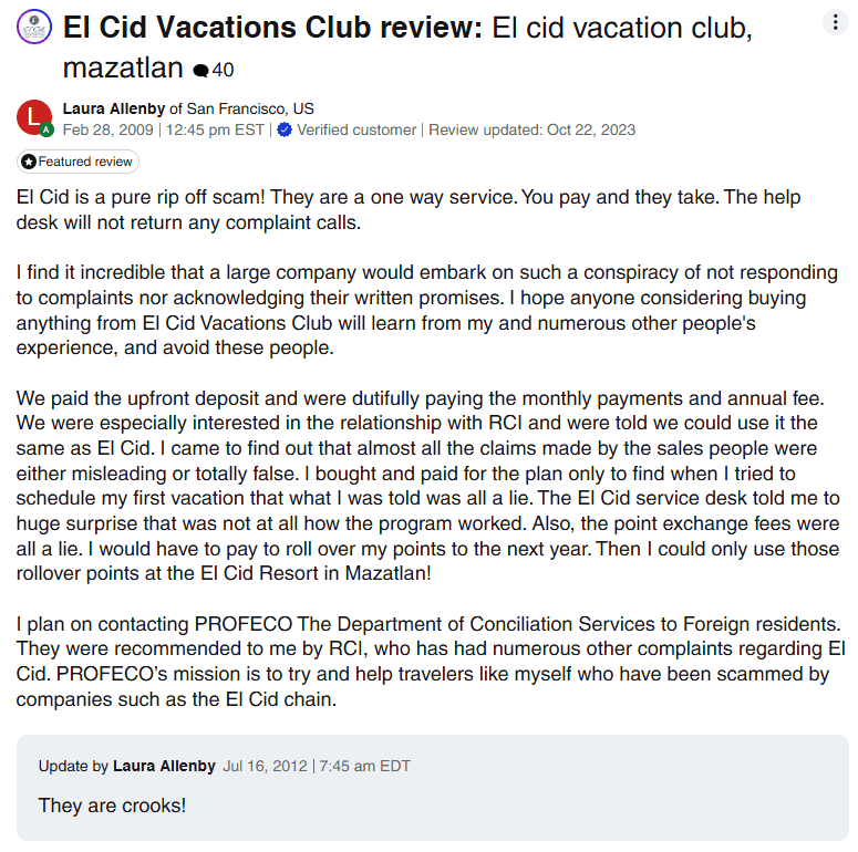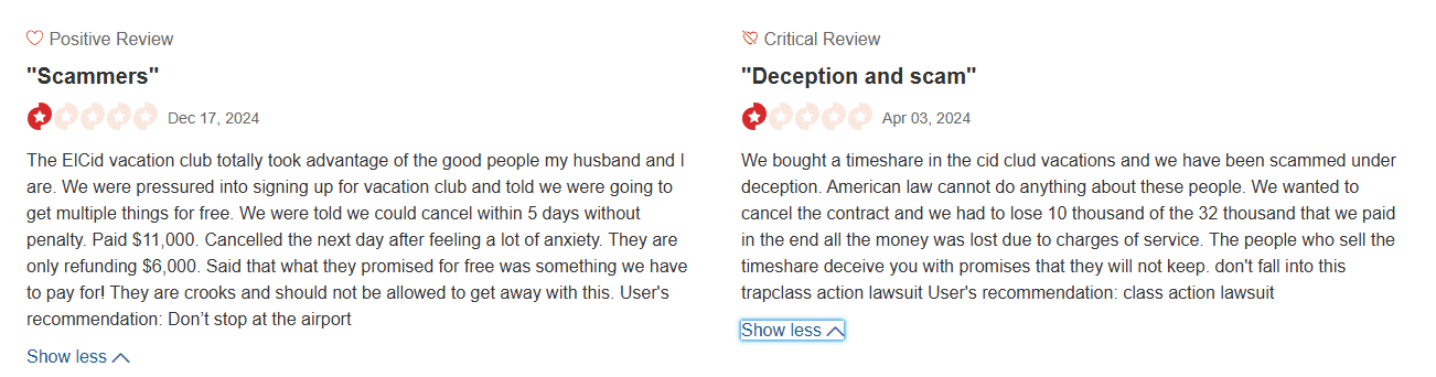 Platforms like PissedConsumer.com and ComplaintsBoard.com are filled with gripes about El Cid. Many complaints detail experiences of deception, dissatisfaction, and regret. And while some of these reviews date back years, the complaints keep rolling in—a red flag for anyone considering buying in.