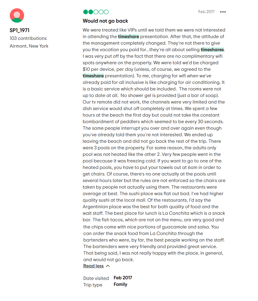 This one’s a doozy. Reviews from websites like TripAdvisor describe situations where the reality of ownership doesn't match the shiny promises made during the sales pitch. People expected VIP treatment and hassle-free bookings but were instead met with restrictions and subpar customer service.