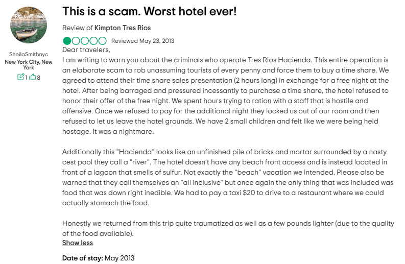 According to multiple consumer review platforms, including PissedConsumer and TripAdvisor, Hacienda Tres Ríos has developed a reputation for exactly this kind of hard-sell approach. Some people even described the experience as bordering on predatory.