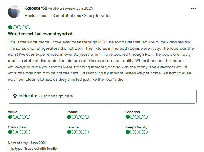 Limited Availability and Booking Frustrations: Members frequently complain about being unable to book their preferred dates or resorts, even when doing so months in advance. Some report that blackout dates and limited inventory make the promised “flexibility” almost impossible to use.