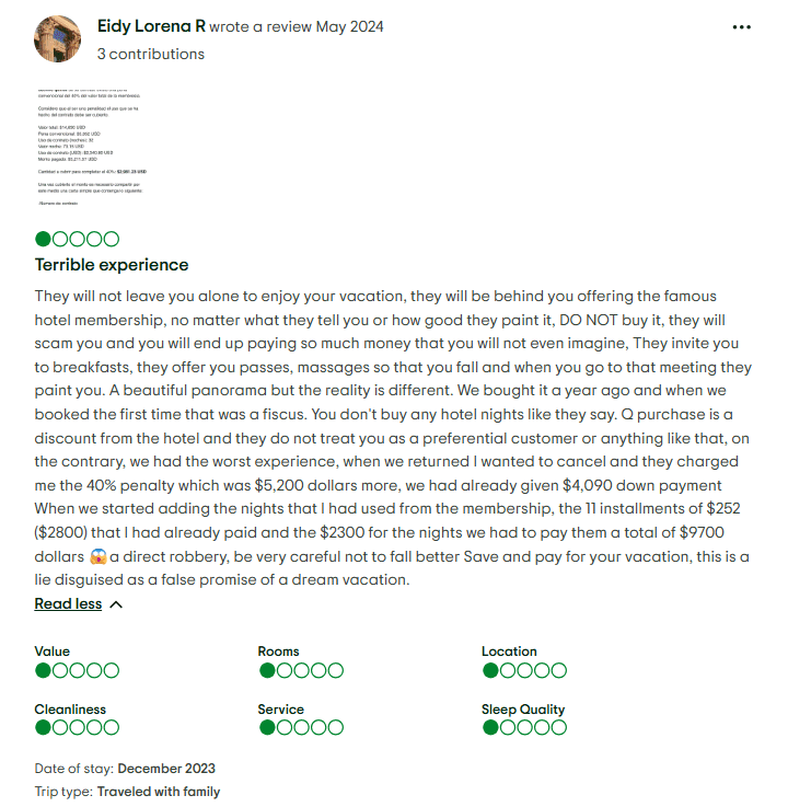 Discrepancies Between Promised and Delivered Benefits: Some members claim that perks like VIP areas, room upgrades, or priority bookings were either unavailable or did not match what was presented during the sales pitch.