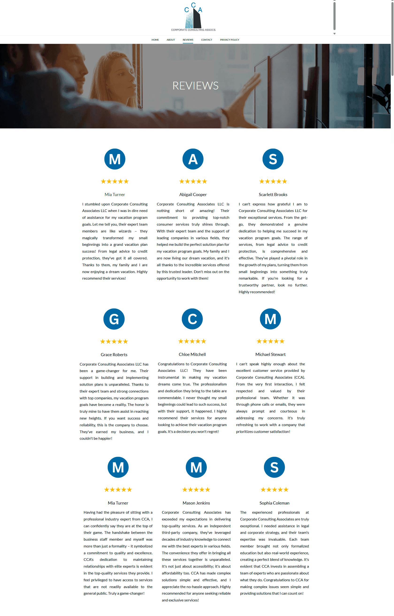 Corporate Consulting Associates is a rather odd and suspicious timeshare exit company. At first glance, you might think their primary website is https://corporateconsultingassociates.org/ — but in reality, they also operate under a collection of lookalike domains: .com (https://www.corporateconsultingassociates.com/), .co (https://corporateconsultingassociates.co/), and even .online (https://corporateconsultingassociates.online/).