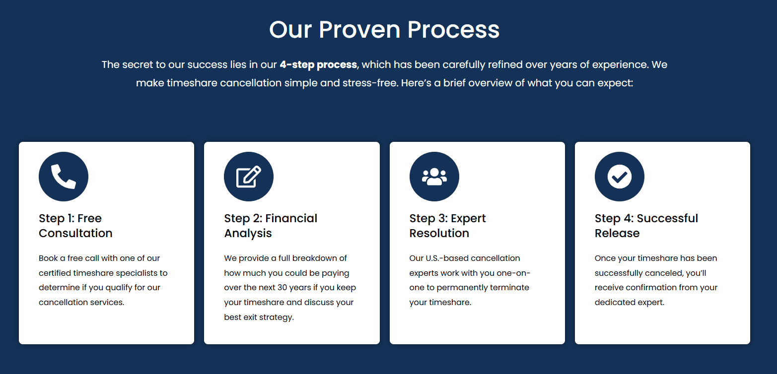 Scrolling further down, they highlight that they only employ U.S.-based cancellation experts. While that may sound reassuring to some, it’s a bit of a downside considering the wide global reach of timeshare ownership—especially in Mexico, where many contracts originate. By excluding non-English-speaking specialists, they’re missing out on a significant segment of potential clients.