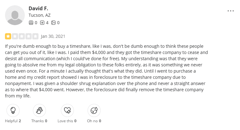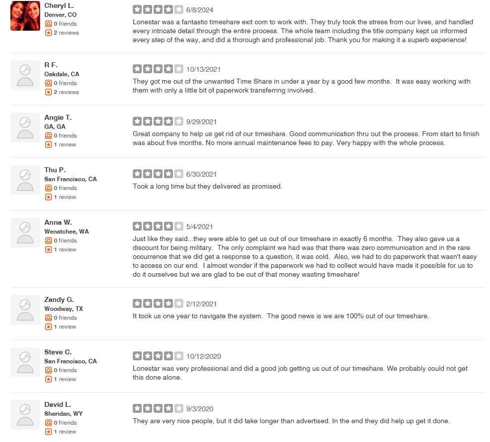 Additionally, the timeframe for successfully exiting a timeshare appears to vary significantly based on user experiences. Without a clearly defined structure or expectations, clients may find themselves uncertain about progress—or lack thereof.