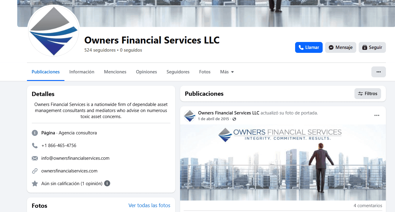 Owners Financial Services may appear on the surface to have been around for nearly a decade—their Facebook dates back to 2015—but outside of that, their presence is surprisingly thin. This lack of visibility alone raises some red flags, as if the company exists more on paper than in practice.