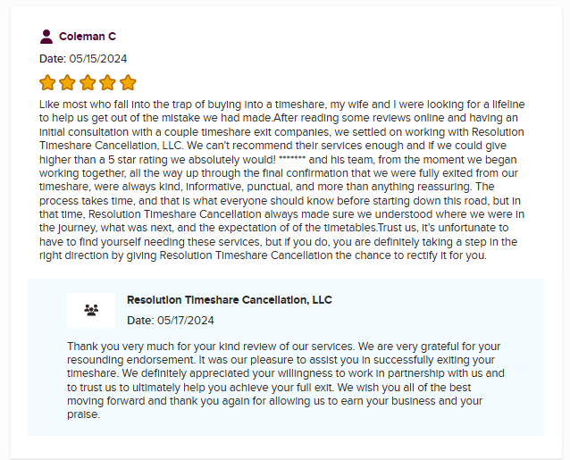 Resolution Timeshare Cancellation Review