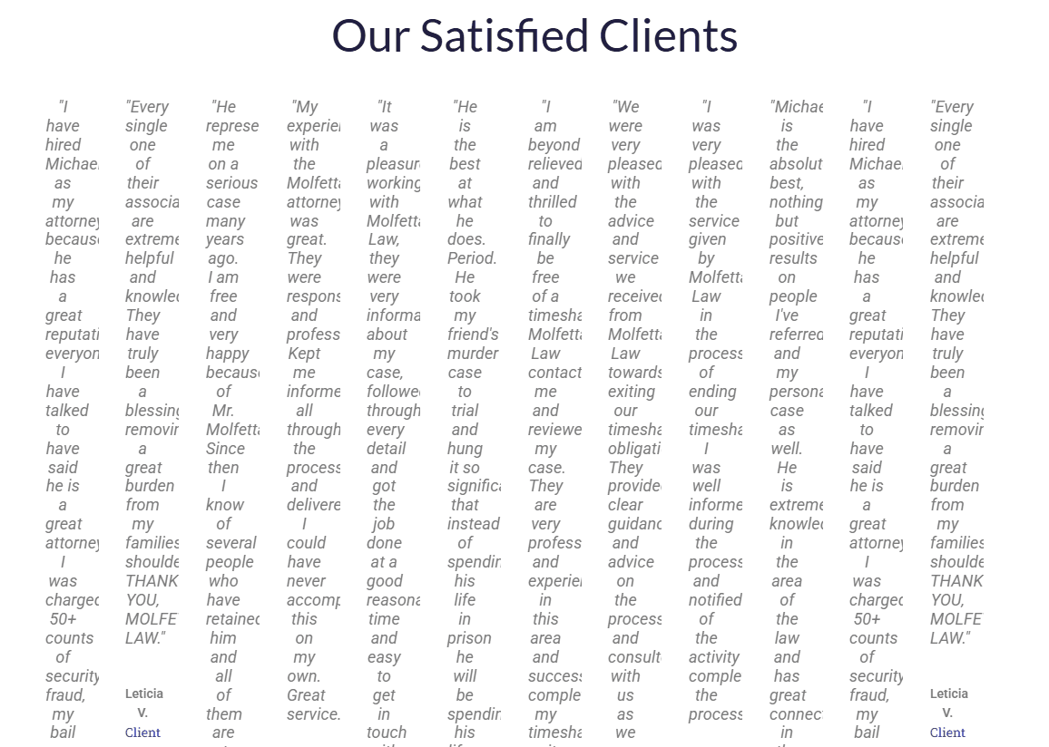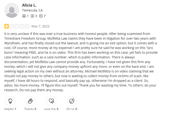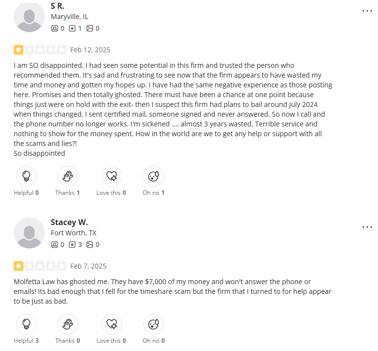 Molfetta Law was a U.S.-based law firm led by attorney Michael A. Molfetta, which at one point branded itself as a timeshare exit specialistâpromising to help clients legally and permanently terminate unwanted contracts. While it presented itself as a professional legal alternative to the many quest...