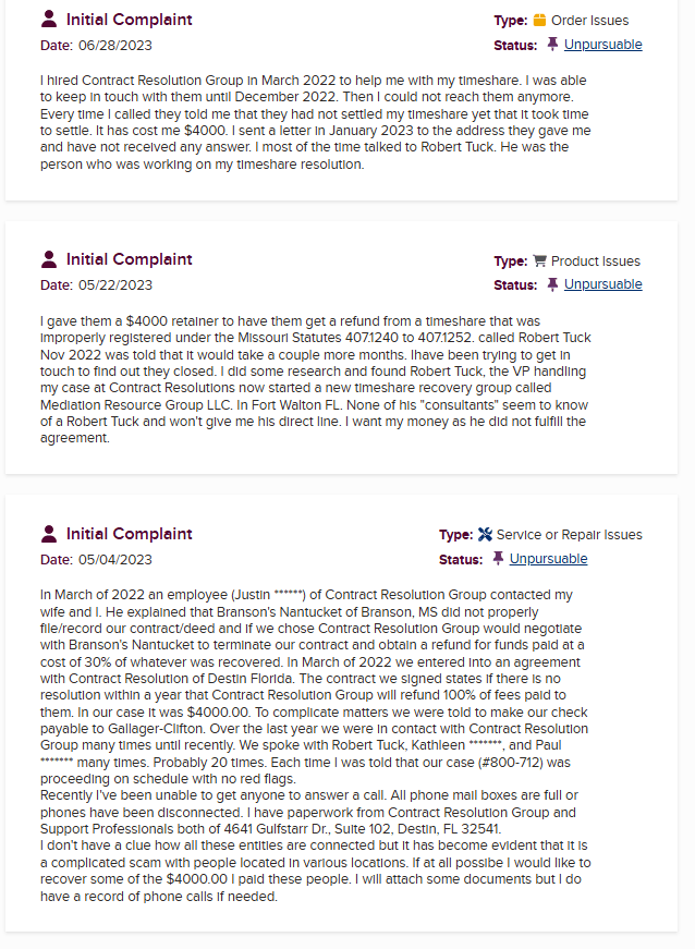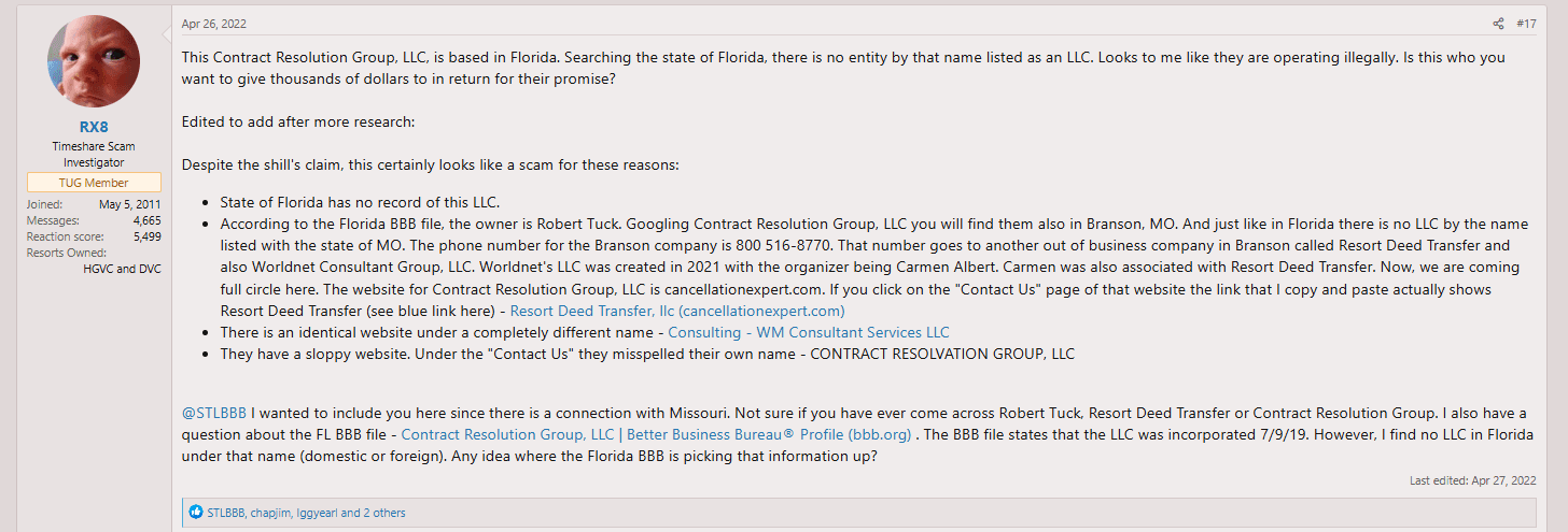Contract Resolution Group was once a timeshare exit firmâthough âwasâ is the key word here. The company has now completely dissolved, faded out of existence, and ultimately become irrelevant in the timeshare industry. Still, for historical and educational purposes, we believe itâs important for cons...