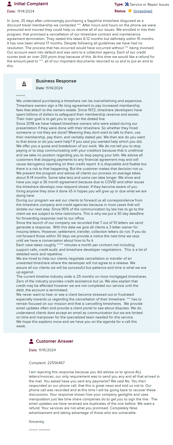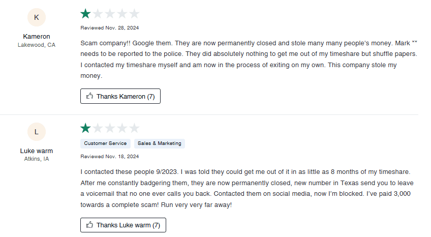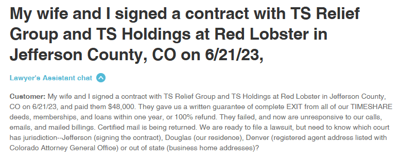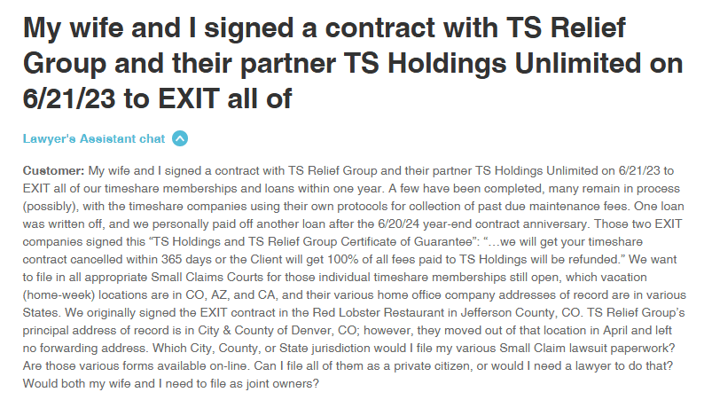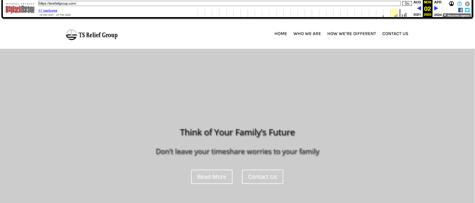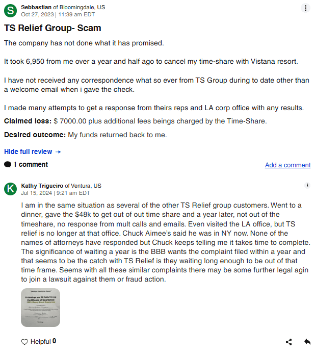 TS Relief Group was a supposed California-based timeshare exit strategy specialist. On paper, they claimed “12 years in service.” In reality, web records show they only surfaced around 2021, a far cry from the polished legacy they tried ...