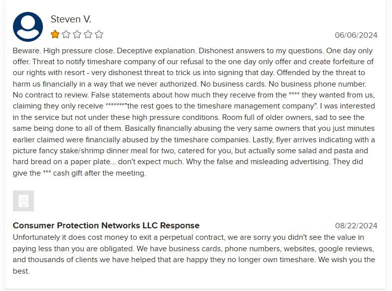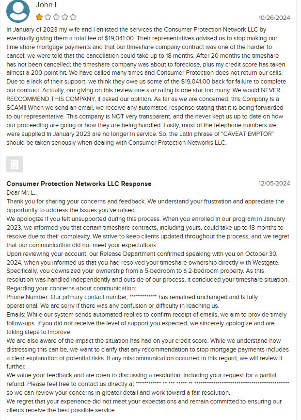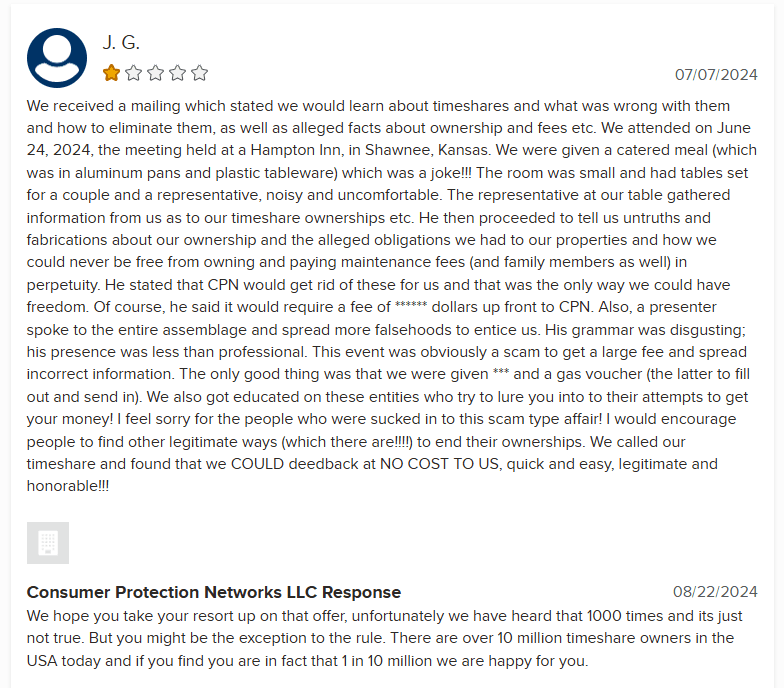 Consumer Protection Networks (CPN) is another timeshare cancellation company with a dubious reputation and a perplexing online presence. While their website boasts a Google review rating of 4.8 stars from 16 reviews, the ratio of positive to negative feedback raises eyebrows. Only two reviews are 1-...