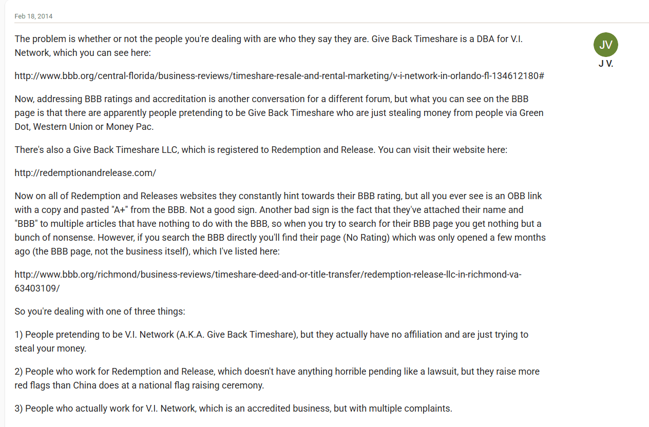 GiveBackTimeshare.com presents itself as a timeshare cancellation company but carries a similarly troubling reputation. Searches for reviews, complaints, or general information about this company yield very sparse results, adding to its aura of ambiguity. Their Facebook page is entirely abandoned, s...