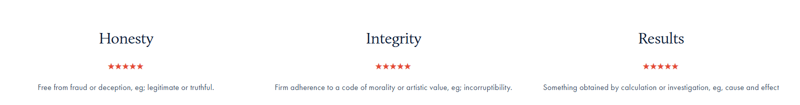 Adding to the skepticism, PCS’s website includes a review section. Yet, instead of actual customer testimonials, the section offers vague definitions of values such as "Honesty," "Integrity," and "Results." While these words may sound appealing, they are not substantiated by verifiable customer experiences, making this portion of their website appear disingenuous. The site’s claim of featuring "reviews from people like you" seems misleading, as no real reviews are presented.