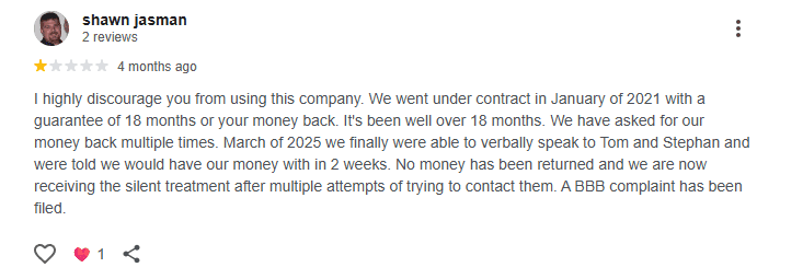 At first glance, their feedback looks fairly balanced — a mix of positive and negative experiences, suggesting they’re not filtering out criticism. Their BBB page shows no official complaints, while their Google Reviews hover around a 3.7-star average. But when you look closer, the timeline tells a different story.