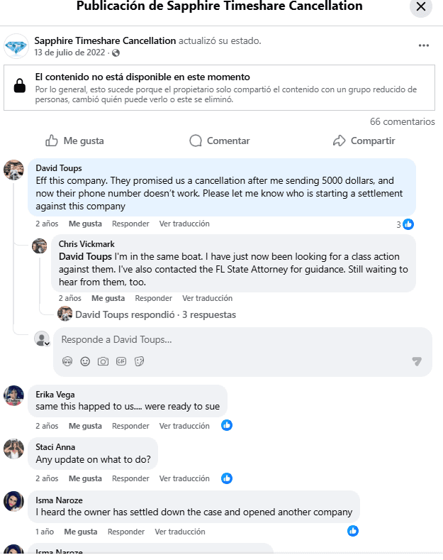 From what we’ve gathered through surviving reports and articles, Sapphire Timeshare Cancellation charged upfront fees for its services. As we’ve discussed in many other cases, this is one of the most glaring red flags in the timeshare exit industry. Legitimate services rarely demand large upfront payments without delivering measurable progress, and in this case, it appears many clients paid the price—literally—without results.