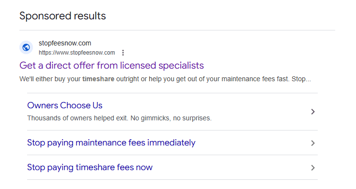 If you find “StopFeesNow” while searching for timeshare exit options, we absolutely do not recommend engaging with them. And remember: giving your timeshare to a reseller does not guarantee that you’ll be freed from your maintenance fees—no matter what their website tries to imply.