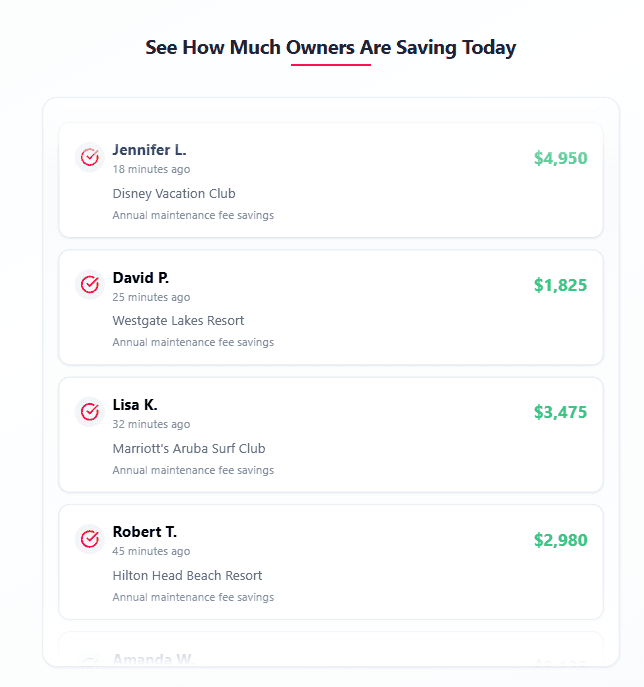Except… the list never changes. Ever. You could sit on the page for an hour and nothing updates. And, let’s be honest, timeshare exits don’t work like instant order tracking. There’s no such thing as “real-time exit savings.”