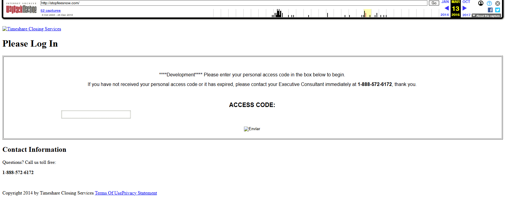 - Reappeared in 2015 as a “work in progress” page linked to a company called Timeshare Closing Services (TCS).
