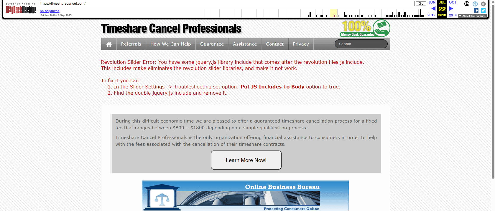 Because of the explosion of timeshare exit companies over the past decade, searching “Timeshare Cancel Professionals” mostly leads you to entirely different exit companies, drowning out this particular one. Despite being around for so long, TCP has left an unusually small footprint. The only meaningful traces we could find are a 2010 TUGBBS thread (which doesn’t say much at all) and their listing on the BBB.