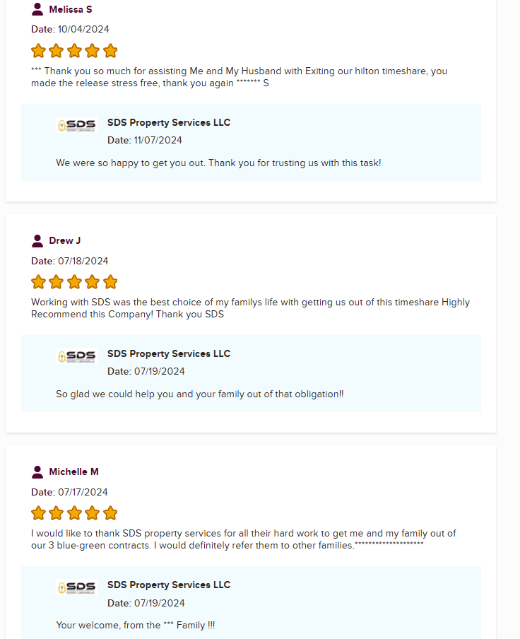 Verdict: Timeshare Exit Today, through its association with SDS Property Services, doesn’t come across as malicious or overtly fraudulent. However, the lack of transparency, limited online presence, questionable testimonials, and minimal activity make it difficult to fully trust them. Their BBB reviews, while glowing, feel too good to be true without a broader range of client feedback.