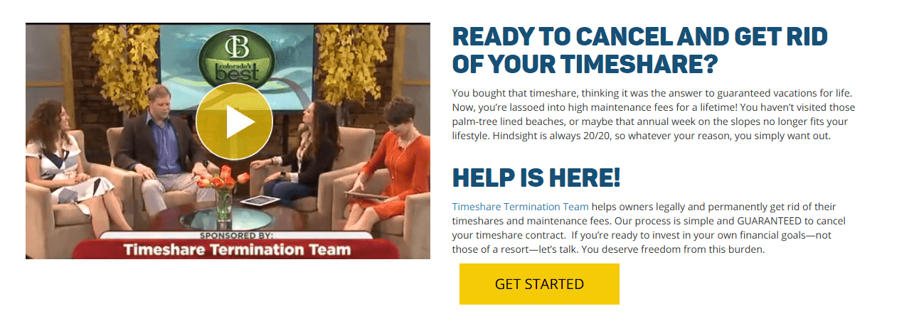 Timeshare Termination Team (TTT) was a Denver-area timeshare “exit” company that marketed heavily on TV, collected large upfront fees, and promised to cancel contracts. On the surface, they appeared polished and professional—garnering glowing testimonials and even TV appearances. This timeshare exit company no longer exists now, but regardless it’s worth noting their faults as a cautionary tale to warn users about fraudulent timeshare exit companies.