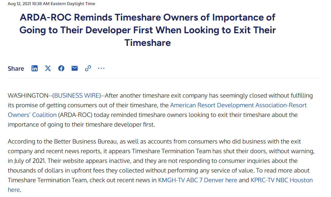 https://www.businesswire.com/news/home/20210812005627/en/ARDA-ROC-Reminds-Timeshare-Owners-of-Importance-of-Going-to-Their-Developer-First-When-Looking-to-Exit-Their-Timeshare/?rel=nofollow