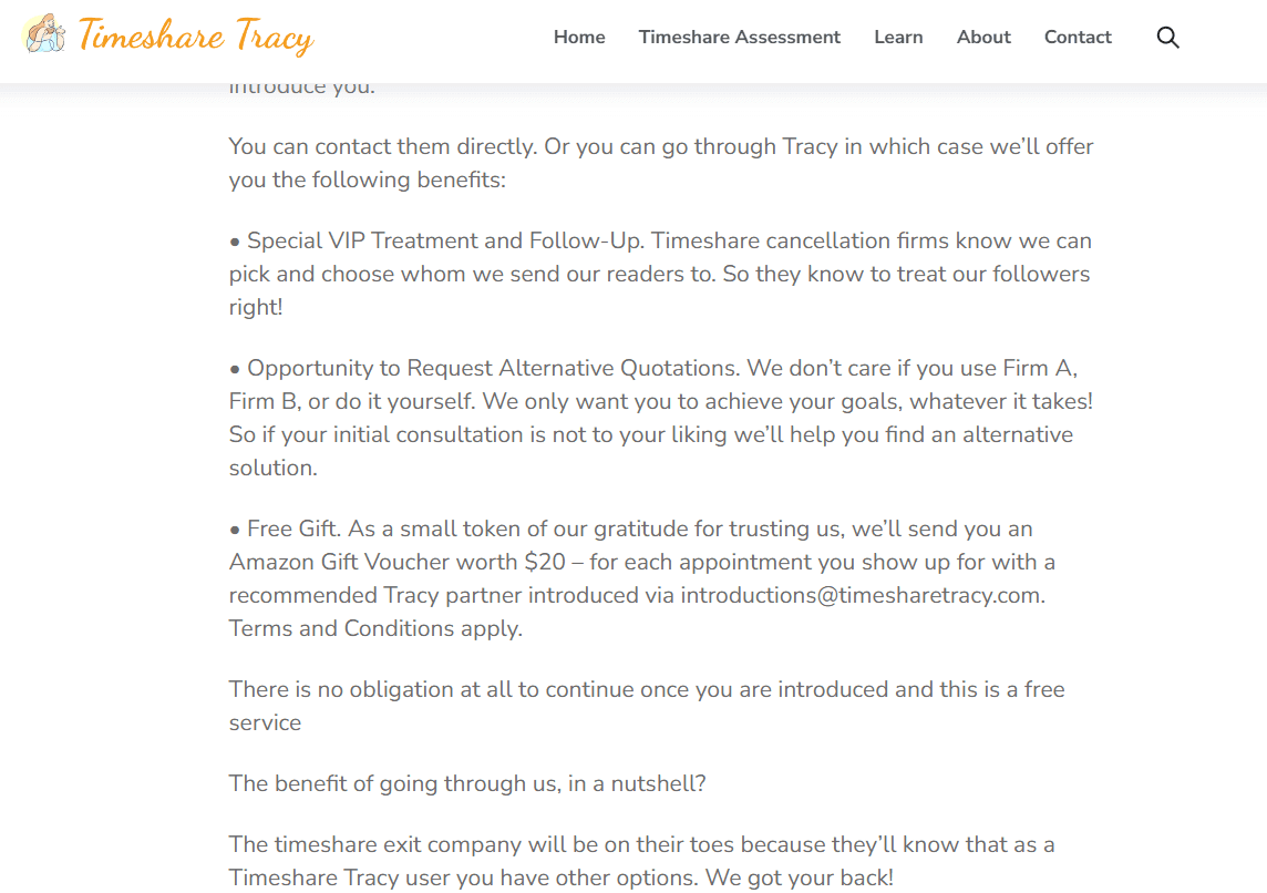 The majority of the new website reads like it was crafted by an AI set to “generic marketing mode,” and almost nothing ties back to their older claims or structure. It’s as if Timeshare Tracy is trying very hard to pretend their first seven years never happened.