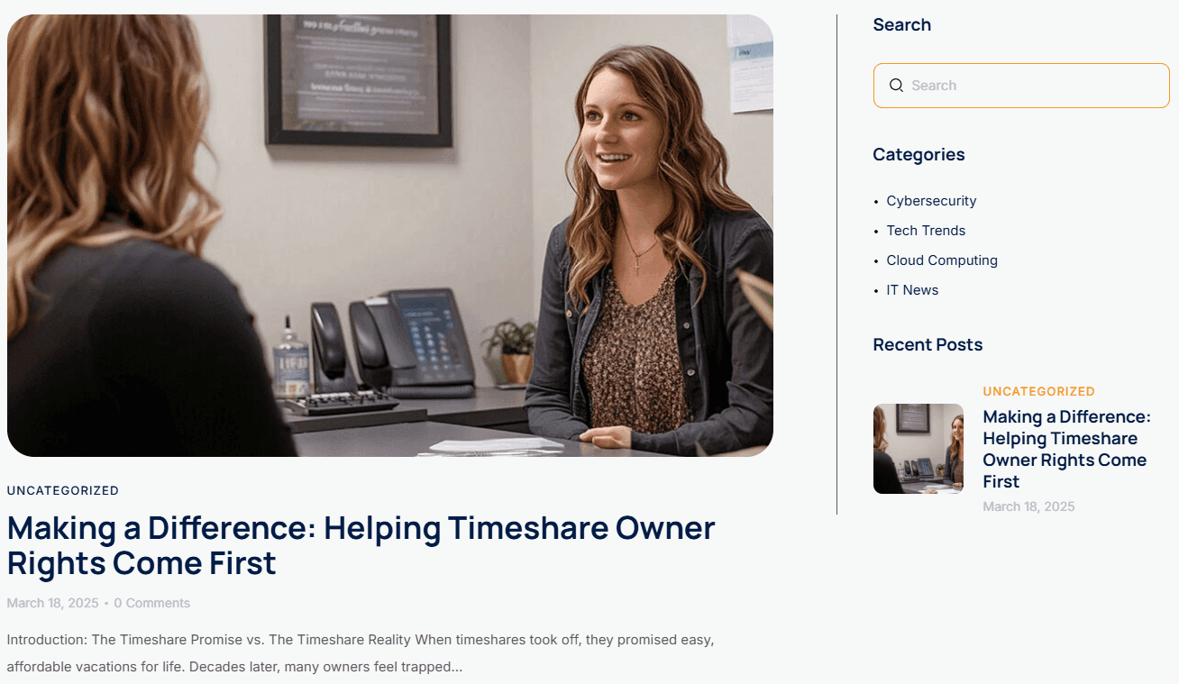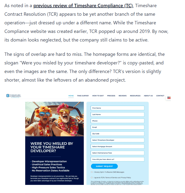 But the biggest eyebrow-raiser from this era came from some of their old blog posts—glowing write-ups exclusively praising Timeshare Compliance and Timeshare Contract Resolution. For a supposedly independent firm, that’s an oddly biased take.