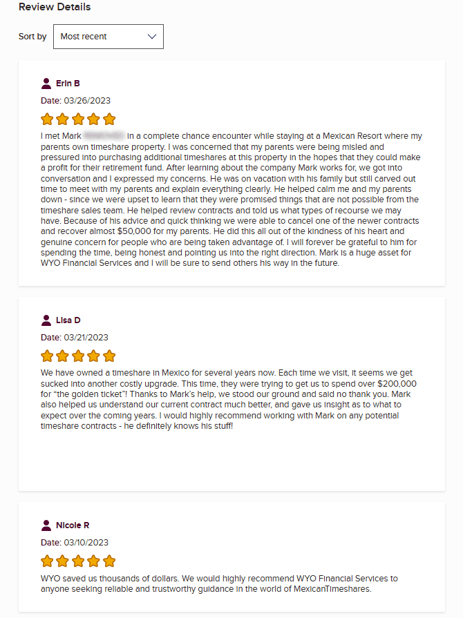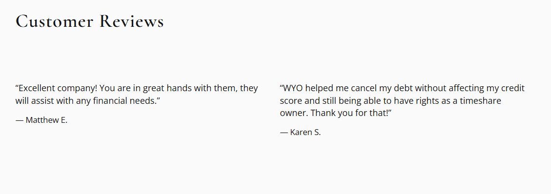 Wyo Financial Services presents itself as a timeshare-exit company focused specifically on Mexican resort contracts. While specialization can be a strength, in their case it also narrows the scope: anyone seeking help with a broader range of timeshare issues may quickly discover that WYO simply isn’t built for them.